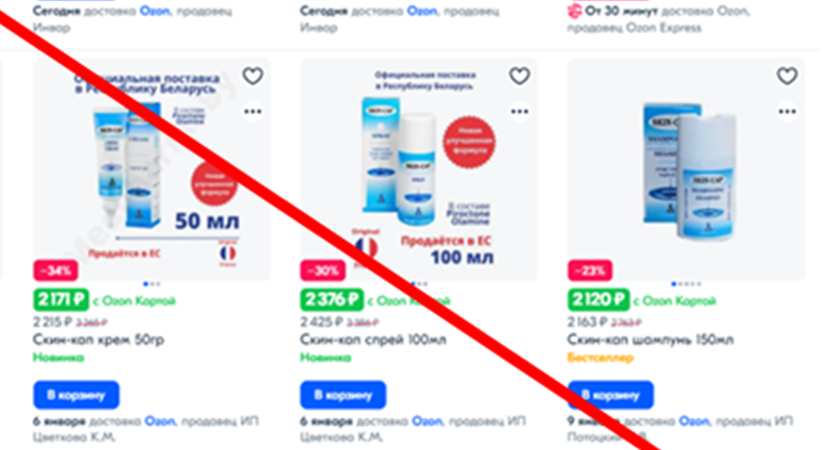 На маркетплейсах Озон и Вайлдбериз появилась косметика с названием Skin cap / Скин-кап с пироктоном оламином! Данная косметика не имеет исследований по эффективности и безопасности применения в РФ! Не зарегистрирована в РФ как лекарственное средство!